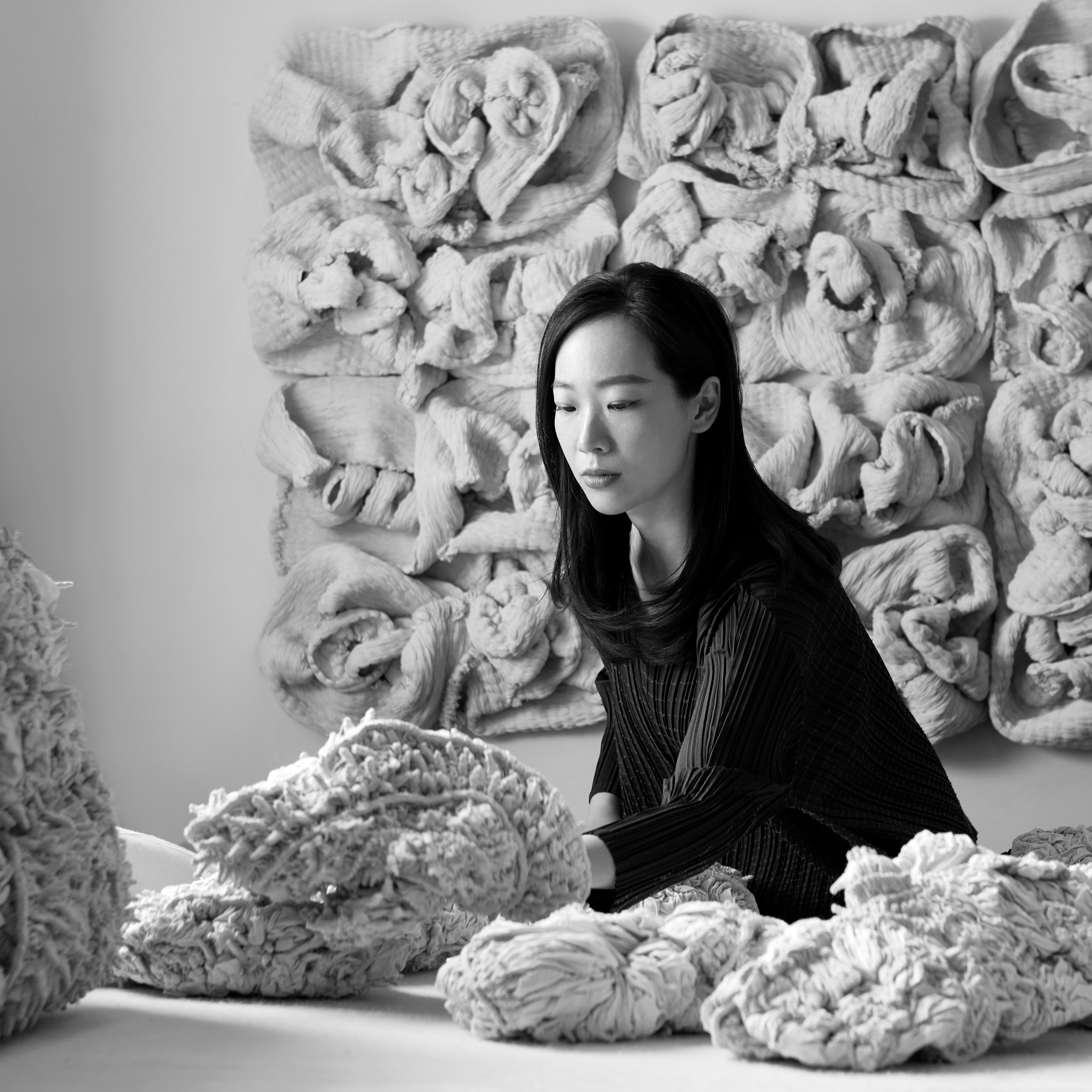 Lin Fanglu's work has been featured in major international exhibitions, including ‘Dimensions: Contemporary Chinese Studio Crafts’, (Victoria and Albert Museum, London), Homo Faber 2024 (Michelangelo Foundation, Venice), LOEWE: Crafted World (LOEWE Foundation, Shanghai Exhibition Center), the NGV Triennial (National Gallery of Victoria, Melbourne), Sculpting the Senses (Musée des Arts Décoratifs, Paris), as well as exhibitions at the Central Academy of Fine Arts Museum, Power Station of Art, West Bund Museum, Xinjiang Art Museum, Aurora Museum, and CHANEL Culture Fund in China. Recent solo exhibitions include It’s All About Her (Erarta Museum of Contemporary Art, Saint Petersburg, 2025), She’s Body (Art+ Shanghai Gallery, Shanghai, 2023), The Power of Binding and Weaving (Samgaksan Geumam Museum of Art, Seoul, 2023), and Threads of Change (Art+ Shanghai Gallery, Shanghai, 2022).